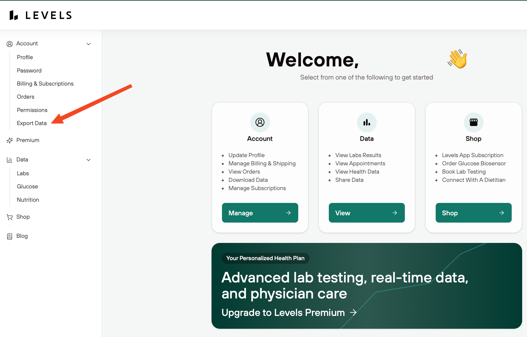 - Log in to your Levels member portal here.