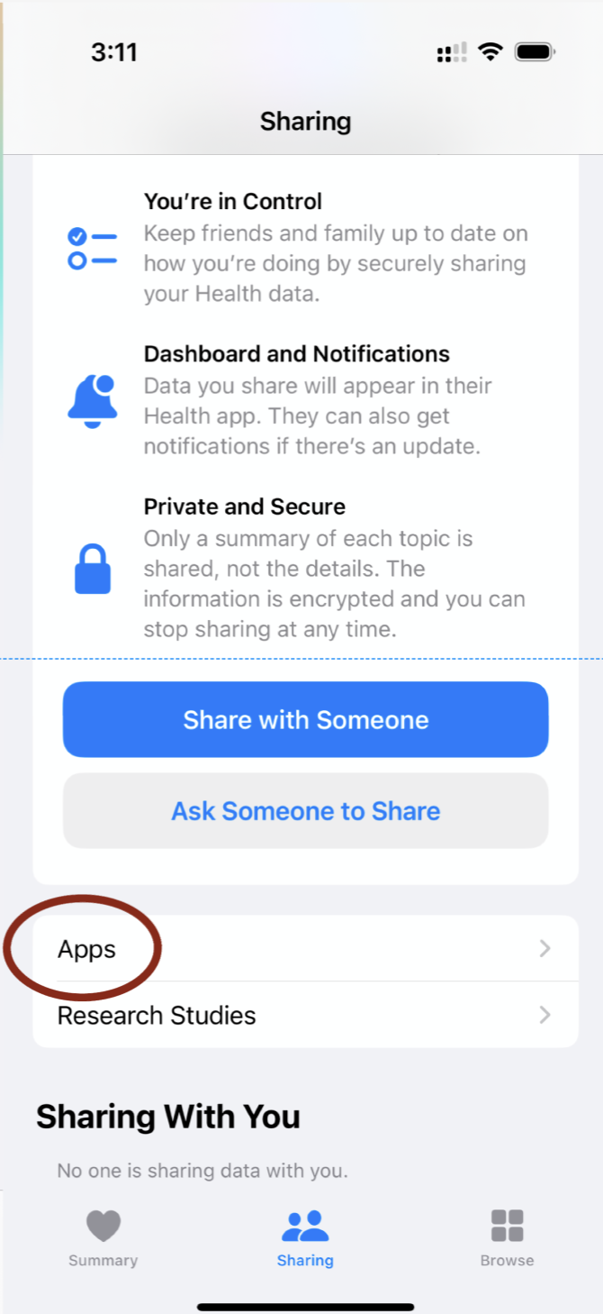 - Select the type of health data you want to manage (e.g., Sleep, Workouts, Steps)